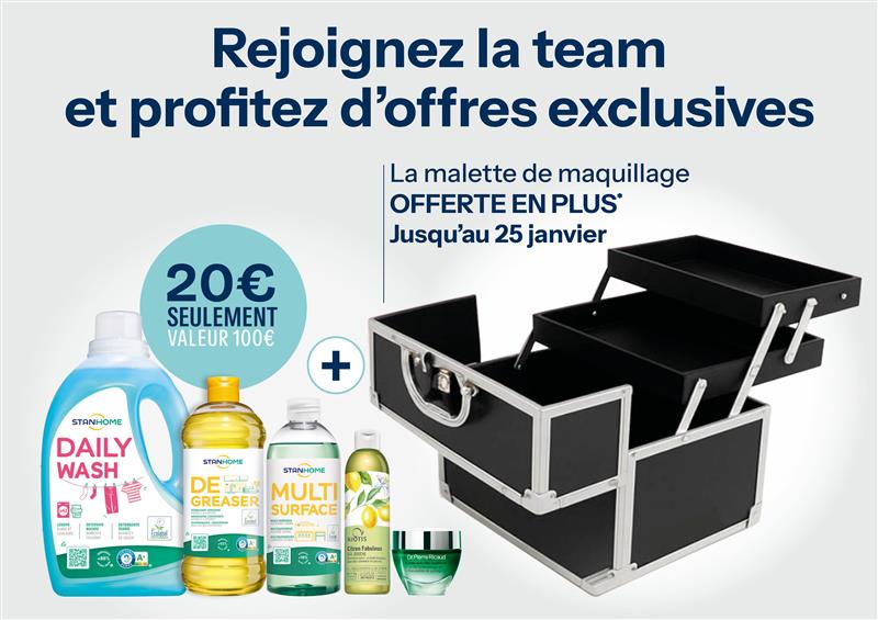 100 € de produits plébiscités par nos clientes pour 20 € seulement, pour vivre pleinement l’expérience Stanhome et démarrer avec le meilleur de nos marques.