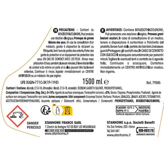 Agents de surface non ioniques et anioniques (agents tensioactifs) : agent émulsifiant : aide deux liquides à se mélanger de façon homogène – agent nettoyant
