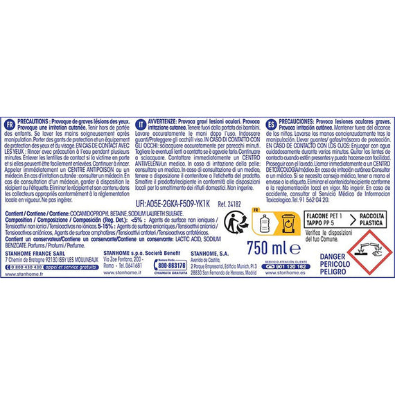- Nettoyage courant : diluer 30 ml à l’aide du doseur Stanhome dans 5 L d’eau.