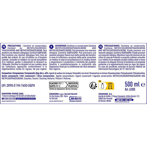 PRÉCAUTION : Contient un conservateur. Contient du METHYLCHLOROISOTHIAZOLINONE AND METHYLISOTHIAZOLINONE. Contient du SUBTILISIN. Peut produire une réaction allergique. Respecter les précautions d'emploi.