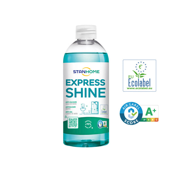 Nos engagements : Express Shine a obtenu la certification ECOLABEL Européen. Sa formule est composée de plus de 95% d’ingrédients d’origine naturelle, incluant l’eau et est facilement biodégradable sur la partie organique de la formule et selon les lignes directrices OCDE 301F. Ce produit a obtenu la certification Air Label Score : la note A+ vous garantit un produit sain pour l’air intérieur et contribue ainsi à respecter votre espace de vie. La tolérance cutanée du produit a été testée sous contrôle dermatologique. Quant à son emballage, il contient 83,76% de matières recyclées (le flacon est composé à 100% de plastique recyclé). L’emballage est majoritairement recyclable.