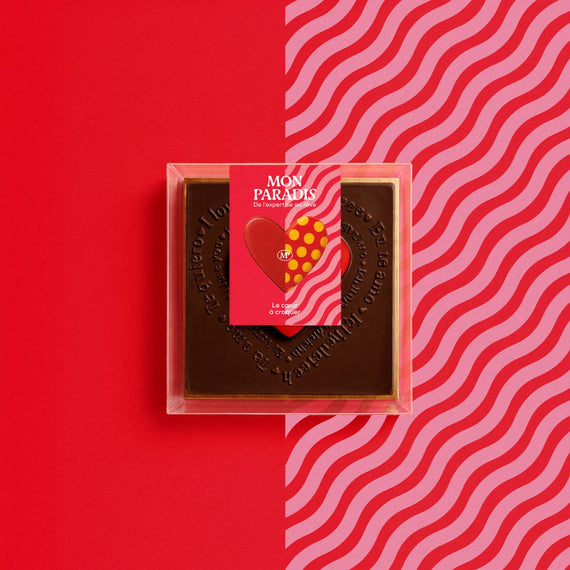Le coeur à croquer incarne les engagements de notre Maître Chocolatier, membre fondateur du programme Chocolatiers Engagés, alliant exigence du goût et responsabilité.